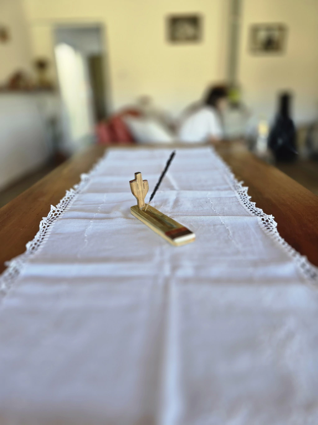 Porta Sahumerios tallado en Madera de Palo Santo con el diseño de un Cactus. Obra del artesano Ramiro Barrios de Salta. Ideal para el bienestar y la decoración.